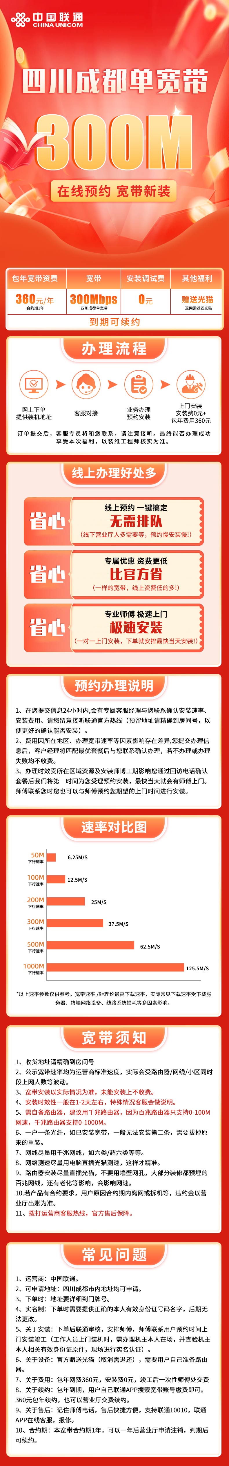 成都联通360元包年300M单宽带【测试】
