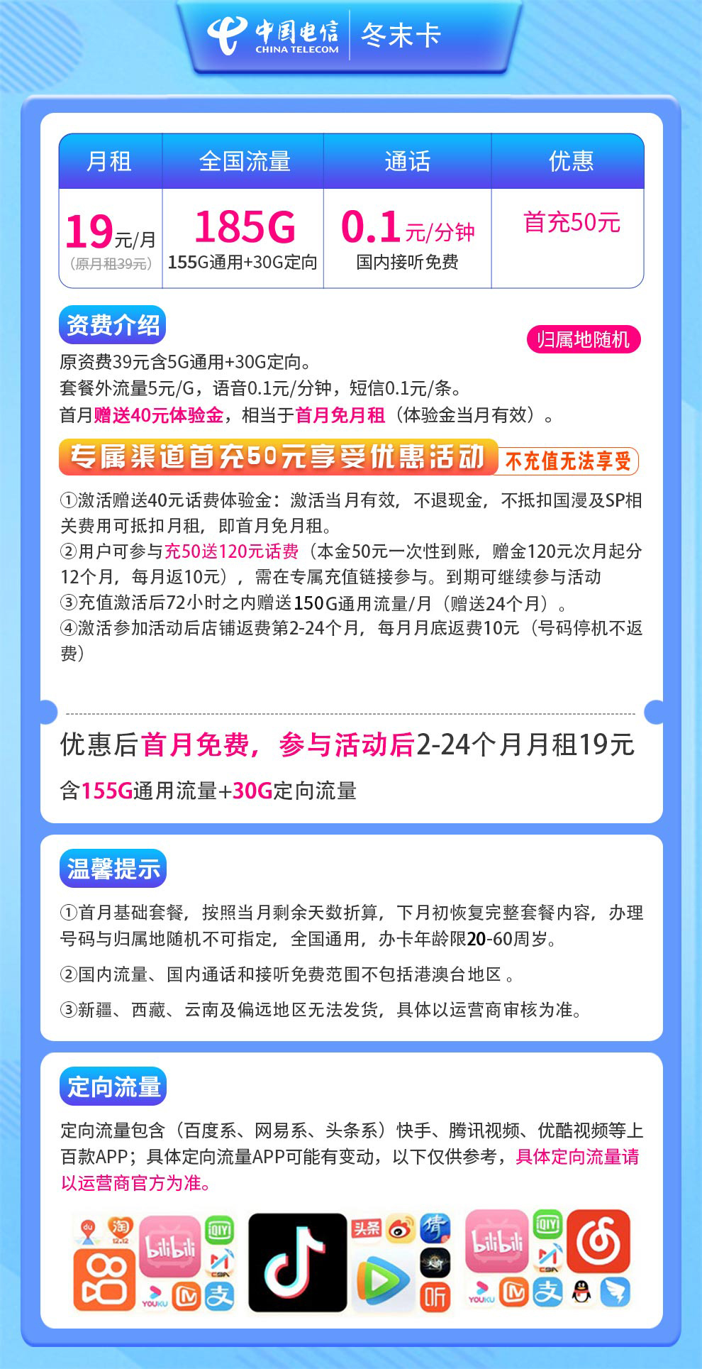 N电信冬末卡19元185G【发全国】