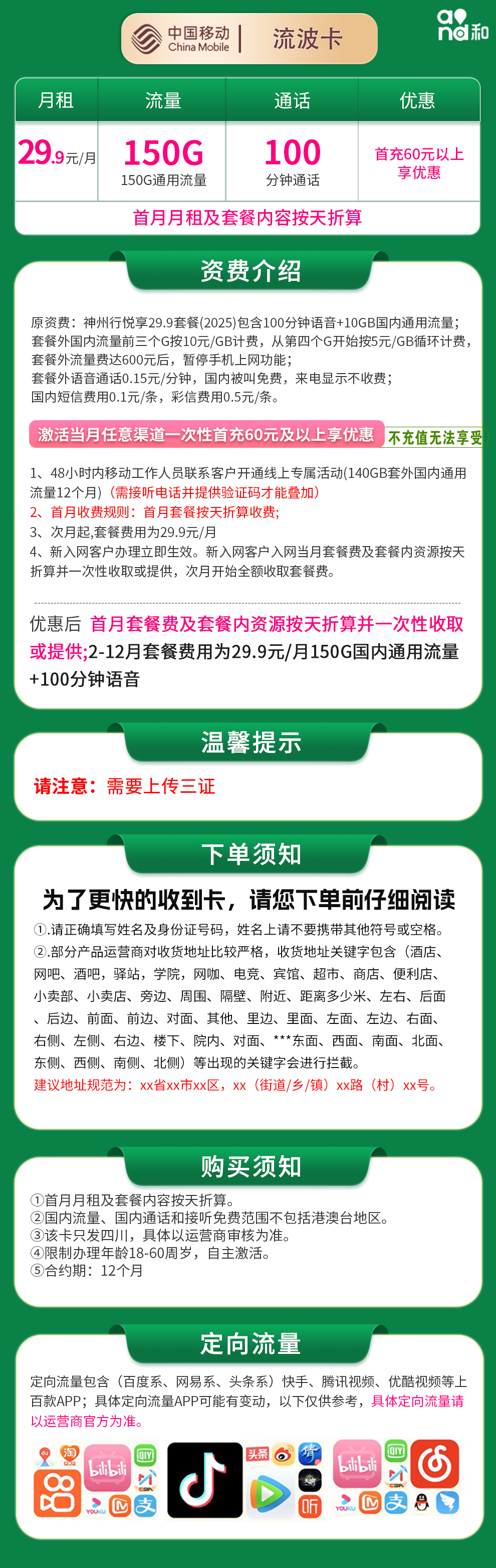 - **注意事项**:激活后48小时内需接听移动电话,配合验证码叠加140GB流量包(有效期12个月)。