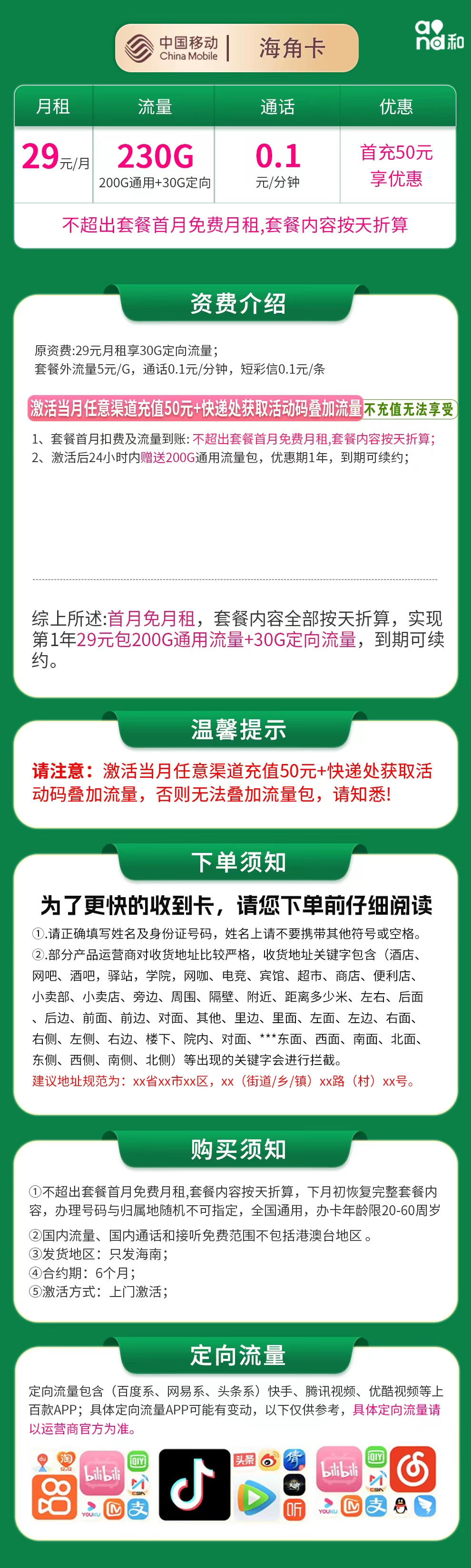 - 【移动海角卡29元230G总结版】